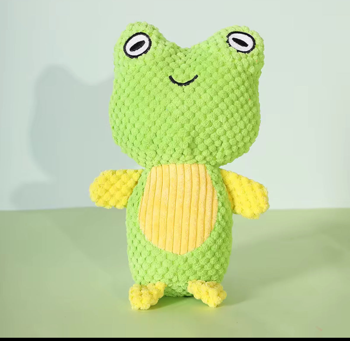 Frog toy with squeaker inside.